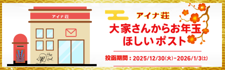 期間中、以下の「大家さんからお年玉ほしいポスト」バナーよりご応募いただくと、